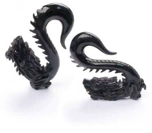 Carved Dragon Horn Ear Hanger Plug Tapers 8mm 0g NEW