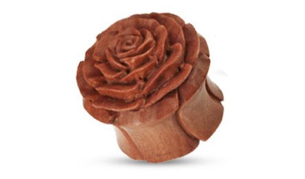 Pair (2) Organic Wood Carved Brown Rose Ear Plugs Flower Tunnels - 0G 8MM Specification